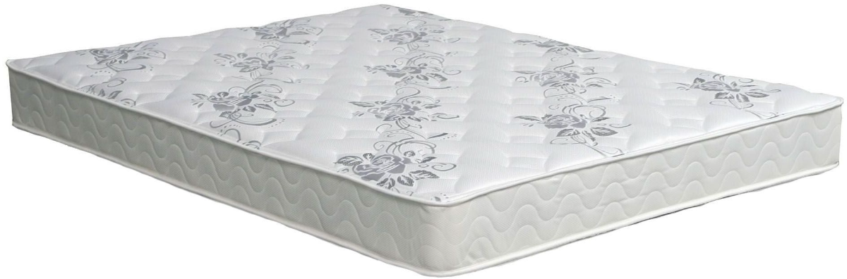 8" tight top mattress,White Fabric With Grey Flowers. Multi Needle 5 Layer Quilting 0.5 oz. Fire Guard Barrier. Available in Twin, Full, Queen, Cal.King and E.King sizes.