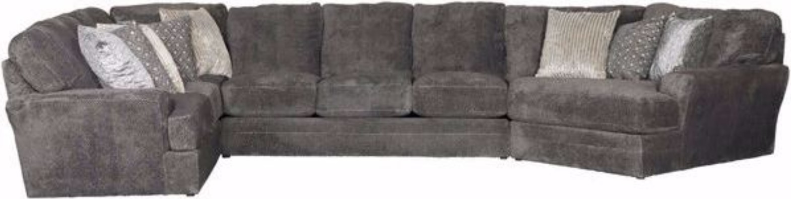 The Mammoth 3-Piece Sectional Sofa Set by Jackson Furniture cradles you as you sink into its oversized cushions and soft, textured polyester fabric. The neutral smoky gray color is sure to complement a variety of designs, as is the selection of nine accent pillows that add pattern and texture to the look.Read More