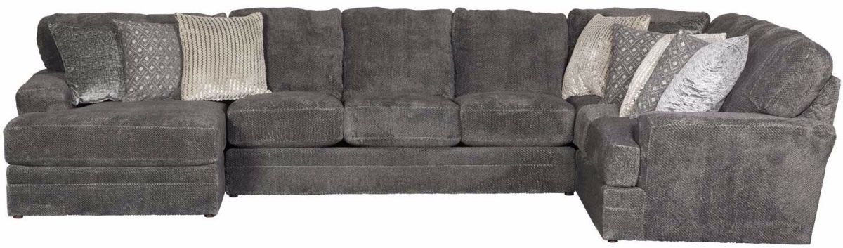 The Mammoth 3-Piece Sectional Sofa Set by Jackson Furniture cradles you as you sink into its oversized cushions and soft, textured polyester fabric. The neutral smoky gray color is sure to complement a variety of designs, as is the selection of nine accent pillows that add pattern and texture to the look.Read More